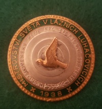 California Hall of Fame inductee A.J.Stauber Bronze 1 1/8" medal for shooting 281 straight. | |