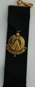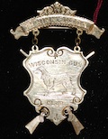 The multi colored gold and silver Rieger Medal was awarded at the Missouri State Shoot in 1895. The Medal was in honor of his service to the Missouri State Trapshooting Organization. this four chain medal measures 3.5"x1.75". Refer to One Hundred Years of Trap Shooting in Missouri for addition information. | |